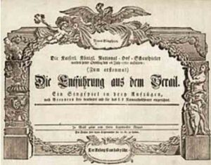 The Abduction from the Seraglio (KV 384) is a Singspiel by Wolfgang Amadeus Mozart, which premiered in 1782 at the Burgtheater in Vienna under the composer’s direction. The composition’s overture contains elements of “Turkish music,” as it was imagined in the 18th century. The expansion of the Viennese Classical orchestra to include instruments such as cymbals, bass drum (“Turkish drum”), piccolo and triangle corresponds to the instrumentation of Janissary music. When Mozart spoke of “Turkish music,” he was always referring to these instruments. “I will compose the symphony, the chorus in the first act, and the final chorus with Turkish music” (Letter to his father, August 1, 1781). In the overture, Mozart displays a great fondness for modulation, with the alternation between major and minor keys playing a particularly important role. Mozart incorporated aspects of Turkish music in the “March of the Janissaries” in the same work, as well as in the “Turkish March” (KV 331).