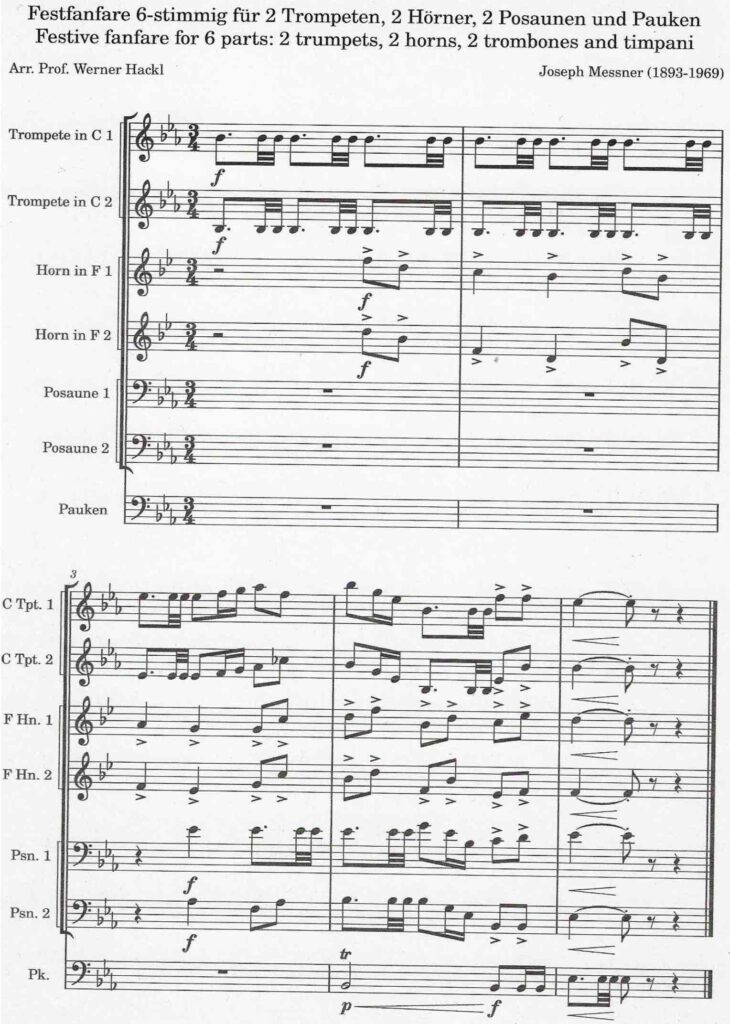 Joseph Messner (1893-1969) Festfanfare 6-stimmig für 2 Trompeten, 2 Hörner, 2 Posaunen und Pauken Festive fanfare for 6 parts: 2 trumpets, 2 horns, 2 trombones and timpani