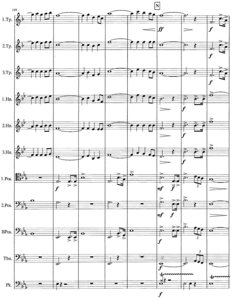 The “Festive Entry” – the original title was “Solemn Entry of the Knights of the Order of St. John” or Investiture March, AV 103 – for brass and timpani was composed in 1909 by Richard Strauss. The occasion was an investiture ceremony of the Johanniter, a brotherhood that is still active in nursing around the world today. The original cast of this work included parts for 15 trumpets, 4 horns, 4 trombones, 2 tubas and timpani. Strauss later scored the work for a full orchestra, including organ and optional choir. An arrangement by Max Reger (1873-1916) includes organ, 2 trombones and timpani. Werner Hackl has written the “Festive Entry” for 10-voices brass ensemble (3 trumpets, 3 horns, 3 trombones, tuba) with timpani.