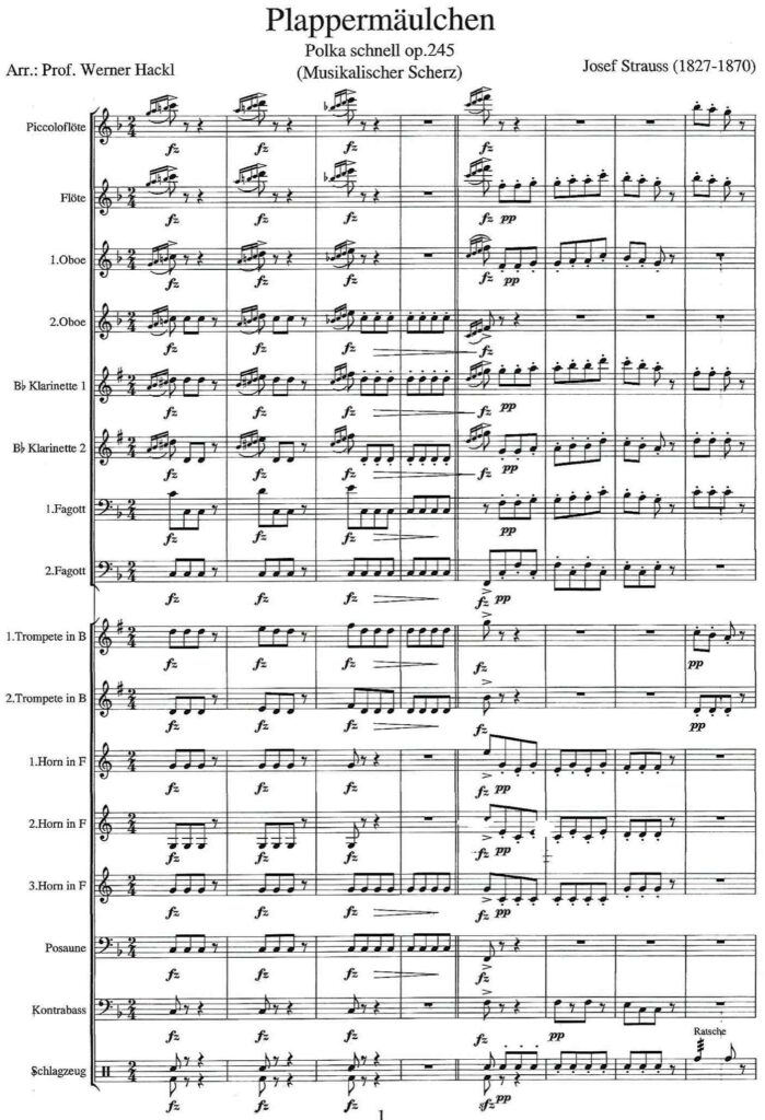 Josef Strauss (1827-1870) Plappermäulchen / Chatterbox, Polka fast, op. 245 (Musikalischer Scherz / Musical Joke)