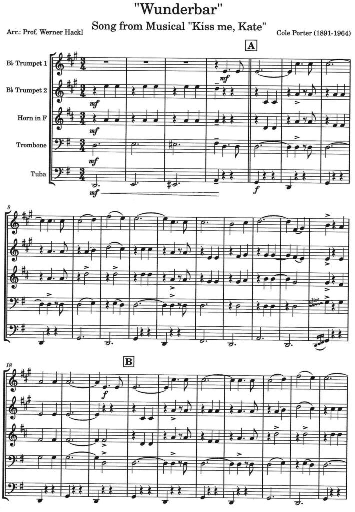 Cole Porter war Komponist und Liedtexter. Der vielfache Preisträger gehört zu den wichtigsten Autoren der USA. Zu seinen bekanntesten Werken gehören die Evergreens „Night an Day“, „Begin the Beguine“, I’ve Got You Under My Skin“ sowie das Musical „Kiss me, Kate“. Porter führte ein freies, sorgenfreies Leben. Ende der 1920er Jahre arbeitete Porter mit wachsendem Erfolg als Komponist und Textdichter. Ab 1935 verbrachte Porter immer mehr Zeit in Hollywood, wo das Filmgeschäft boomte. Im Oktober 1937 hatte er einen schweren Reitunfall, der sein Leben grundlegend veränderte. Er erlitt schwere Beinverletzungen; Schmerzen begleiteten ihn sein restliches Leben. Cole Porter starb im Alter von 73 Jahren in Santa Monica. „Kiss Me, Kate“ ist Porters bekannteste und erfolgreichste Musical. Es handelt von einer Theatergruppe, die eine musikalische Fassung von Shakespeares „Der Widerspenstigen Zähmung“ aufführt; es ist also ein „Stück im Stück“ zu sehen. Das Lied „Wunderbar“ beschreibt eine Liebesnacht, die „wunderbar“ ist. Die Nacht, die beide Liebende gemeinsam genießen, ist sternenklar und keine Wolke ist zu sehen. Am Ende steht die Aussage, dass die Liebe der beiden Verliebten „wunderbar“ ist.